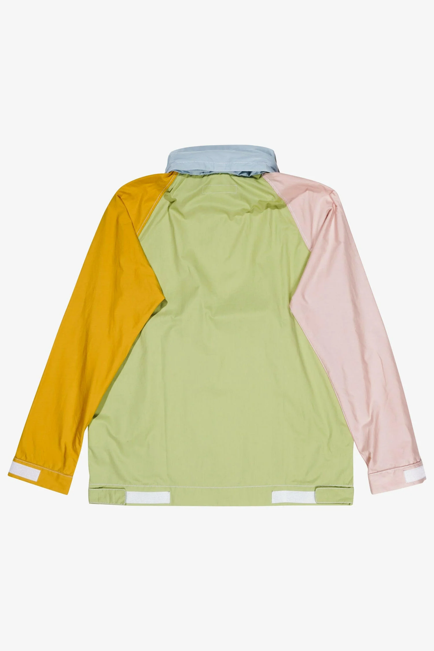 ThisĀ Multicolor Patchwork Blouson features pastel hues and contrast notions on a cotton taffeta frame. Its pullover design features a half zip placket, further aligned with a horizontal zip chest pocket and angled hand pockets. The standing collar stores an easy-access hood for unpredictable weather. Semi-raglan sleeves and VelcroĀ® cuff cinching round out the details.
